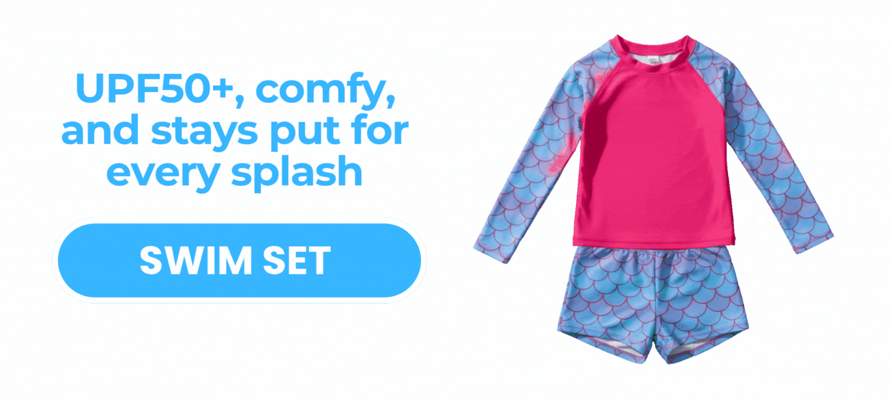From swimming lessons to sunny days by the water, this set brings fun, function and fearless colour to every splash!