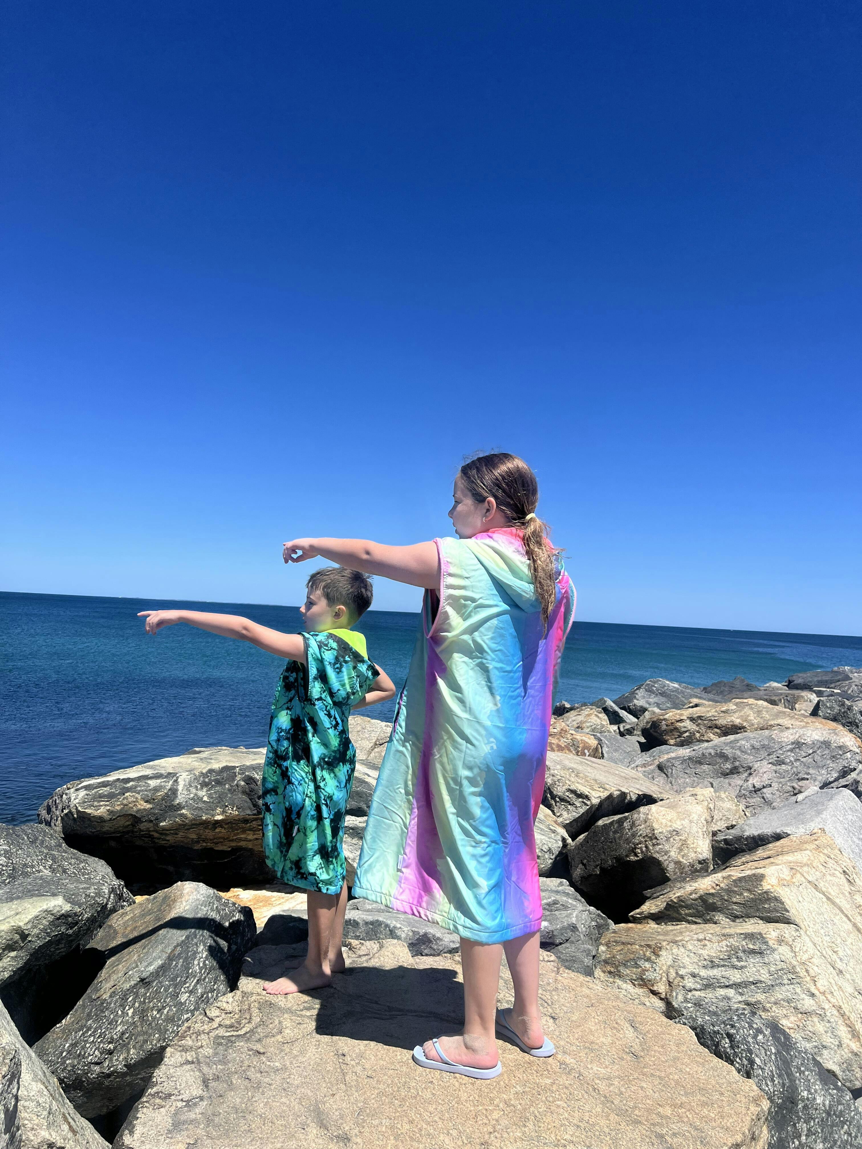 My kids are so excited about their new swim parkas! They absolutely love them. They love the fact that they can remove the sleeves for our hot summer days and will also have something warm for our winter swimming lessons! The colours are so beautiful too. Very happy with our purchase. Thanks